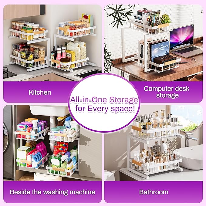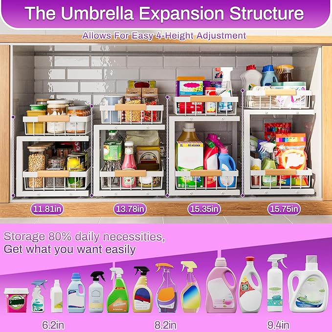 ADBIU Under Sink Organizer, 2 Pack 2 Tier Expandable Height (White, XL) Under-Sink Bathroom Kitchen Organizers And Storage