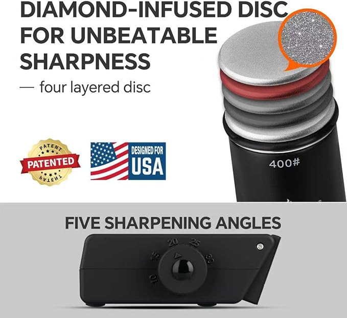 - 【Five selectable Angle Sharpening,patent design】Easily & quickly sharpen traditional and specialty blades