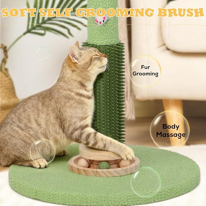 Cat Scratching Post,37.5'' Tall Sisal Cat Tree Scratching Post for Indoor Cat,Cat Scratcher with Cute Mouse Hole Toy,Interactive Ball and Rotating Ball Self Groomer Brush for Kittens Adults Cat
