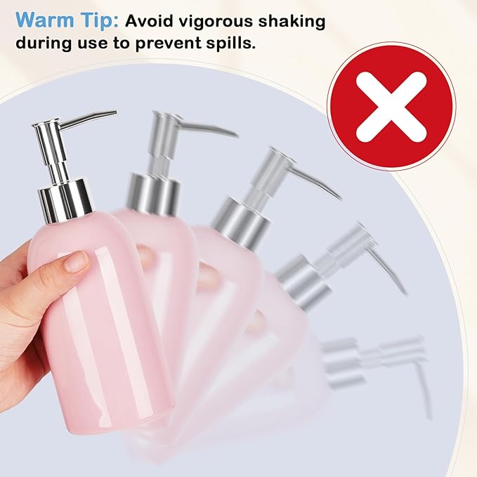 - Versatile Liquid Compatibility: This ceramic soap dispenser is designed for thicker liquids like lotion, hand sanitizer, shampoo, shower gel, and even laundry detergent. (Note: Avoid vigorous shaking during use to prevent spills.)