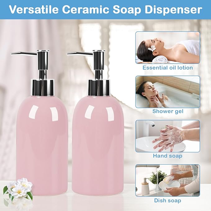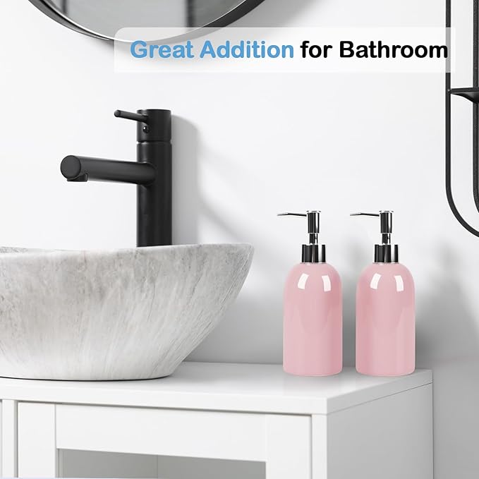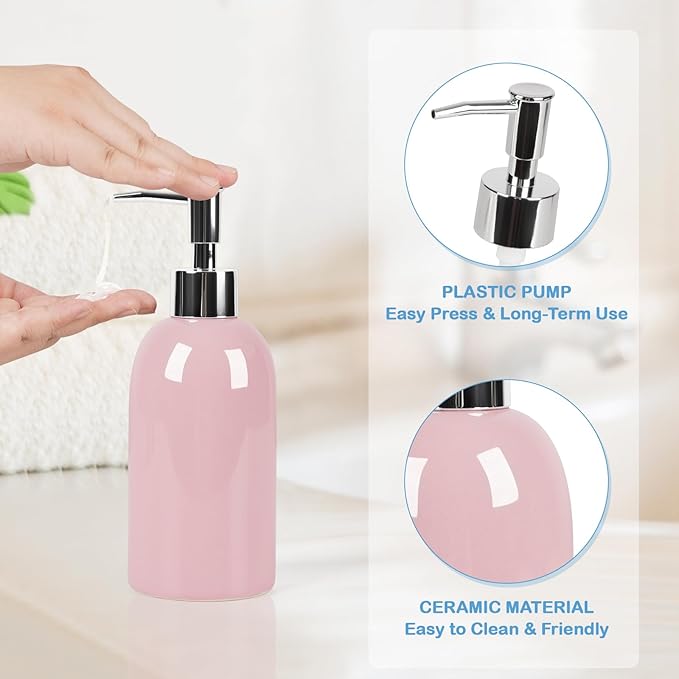 Natheeph 14OZ Ceramic Soap Dispenser Ceramic Soap Pump Dispenser Can Fill Liquid for Bathroom/Kitchen (2PC Pink)
