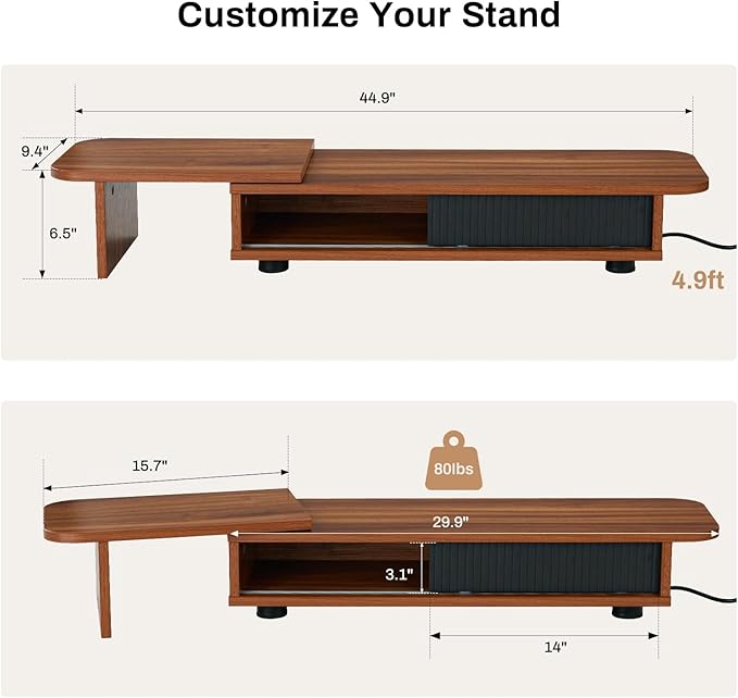 - ADJUSTABLE LENGTH & ANGLE, RAISE YOUR SIGHTLINE - Raise your screen to the ideal height and angle with our adjustable wood monitor stand. Whether you're using a monitor, tablet, or laptop, it helps you maintain healthy posture by aligning your eyes with the screen — reducing strain on your neck and spine.
