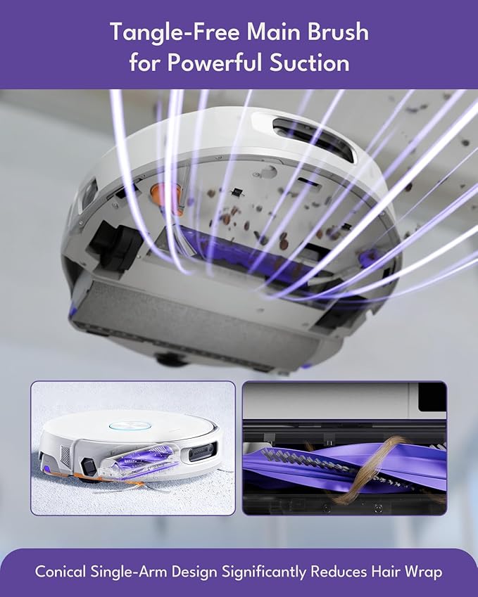 - [Tangle-Reducing Main Brush] Our replacement main brush for the Narwal Flow features a conical, single-arm design that helps to reduce hair wrap by effectively guiding debris toward the dustbin. This design supports the vacuum's strong suction power for consistent pickup performance on your floors over time