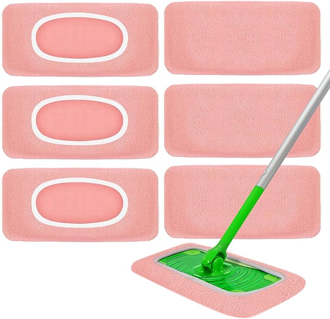 6 Pack Reusable Microfiber Mop Pads - Compatible with Sweeper, Reusable Mop Pads, Washable Dry Cloths & Wet Pads Refill for Hardwood Laminate Tile Floor Cleaning (Pink, M)