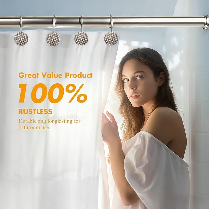 - Smooth Sliding & Anti-Drop - The smooth surface of the shower curtain hooks reduces friction, allowing them to glide effortlessly along the shower rod. The rounded design at the end of each hook ensures a secure hold on the rod, preventing any drops.