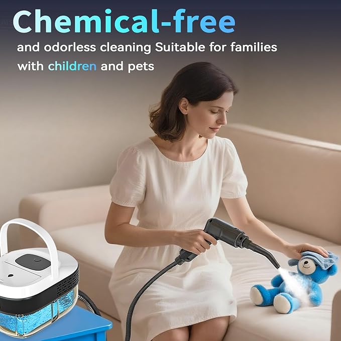 - 【Applications】: This portable cleaner works well for homes, offices and vehicles. It effectively removes stubborn grease/stains from kitchen countertops, walls, stovetops, range hoods, microwaves, ovens, grills, washing machines, refrigerators, tiles, sofas, carpets and car interiors. Achieves great results without harsh chemicals—ideal for deep cleaning all surfaces!