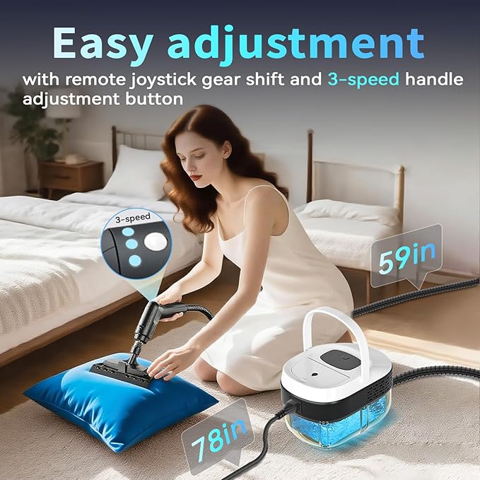 - 【Portability Features】: It comes with a 79-inch power cord and 59-inch thickened steam hose for flexible cleaning. Compact 9×6×7-inch size enables easy storage. The 1600ml (54 oz) large tank supports up to 60 minutes of continuous use, reducing frequent refills and ensuring uninterrupted whole-home deep cleaning. Unlike others, it allows mid-cleaning refills without cooling down.