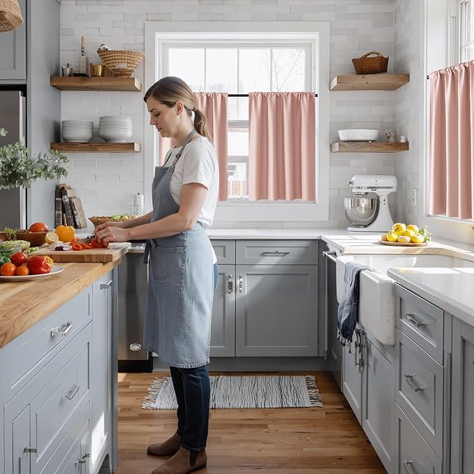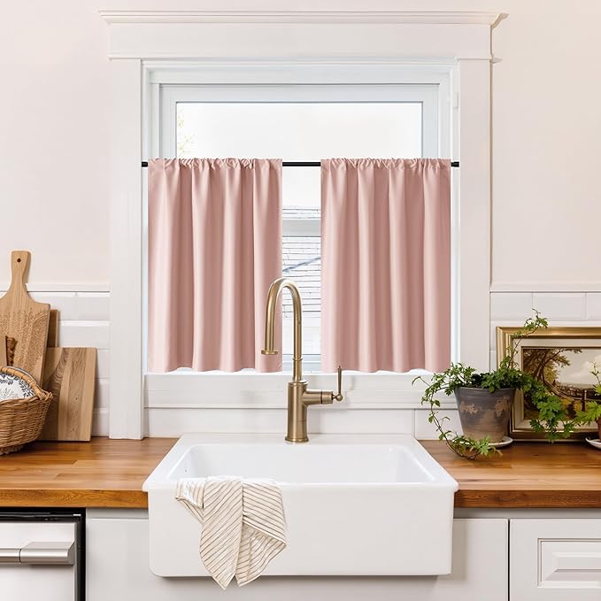 RYB HOME 100% Blackout Bathroom Curtains Over Sink 24 inches Long, Heat & UV Blocking Total Room Darkening Noise Reducing Curtains for Basement RV Campers, Peach Pink, 2 Panels Set