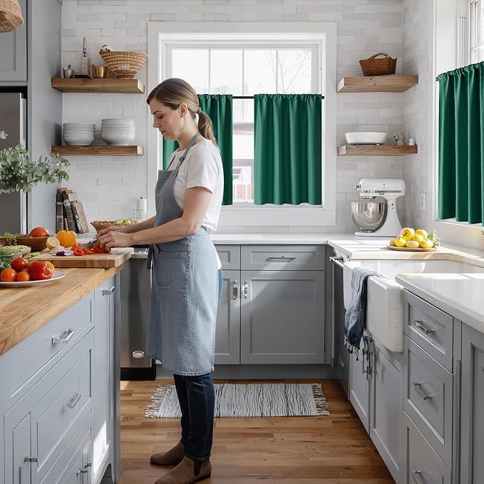 RYB HOME 100% Blackout Short Curtains for Small Window, Thermal Insulated Total Room Darkening Noise Reducing Curtains for Basement Bathroom RV Cars, 29 inches Wide by 36 inches Long, Dark Green
