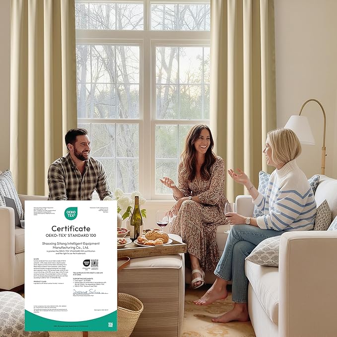- 100% Blackout: Crafted with thickened and densely woven yarns, our curtains offer 100% blackout effect. The high-density weave technique means more threads per square inch, effectively blocking out even the brightest sunlight. This feature transforms day into night, offering you a perfect sleeping environment no matter the time of day.