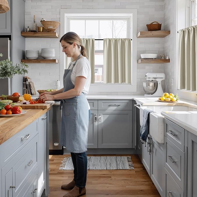 RYB HOME 100% Blackout Short Curtains for Small Window, Thermal Insulated Total Room Darkening Noise Reducing Curtains for Basement Bathroom Basement, 29 inches Wide by 45 inches Long, Natural