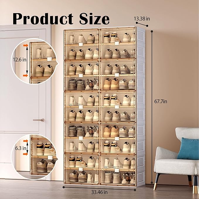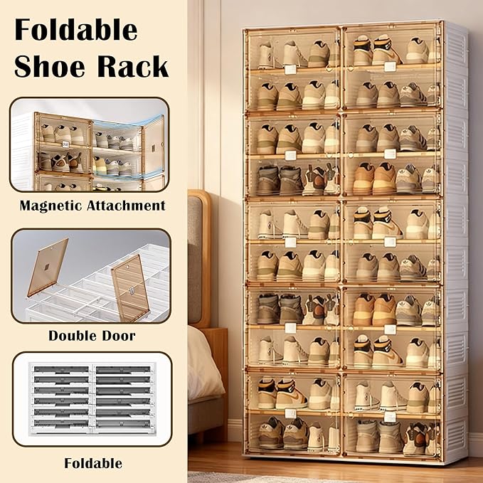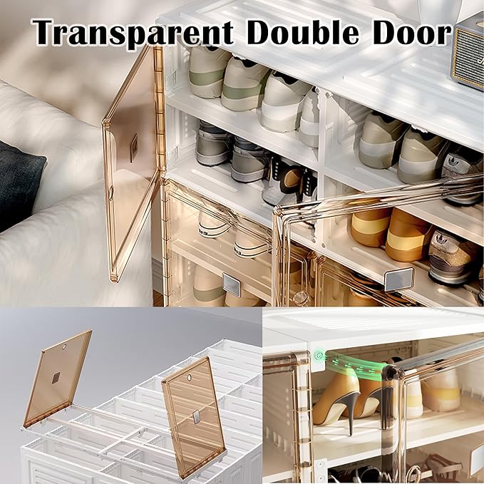 - ๐ง๐ฟ๐ฎ๐ป๐๐ฝ๐ฎ๐ฟ๐ฒ๐ป๐ ๐ ๐ฎ๐ด๐ป๐ฒ๐๐ถ๐ฐ-๐๐น๐ผ๐๐ฒ ๐๐ผ๐ผ๐ฟ๐: Each tier is equipped with a crystal-clear, see-through door and a secure magnetic clasp. Doors stay firmly closed to protect your shoes from dust, while the transparent design lets you quickly identify and grab the pair you want