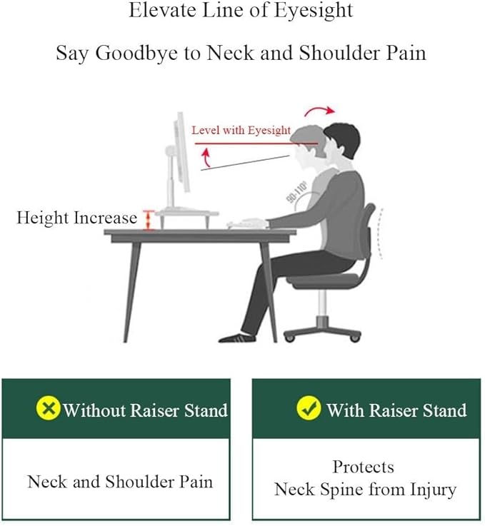 - Ergonomic Comfort for Daily Use: Enjoy a more comfortable and productive workspace with this ergonomic monitor riser. It helps elevate your screen to the ideal viewing height, reducing strain on your neck, shoulders, and back during long hours of work or study