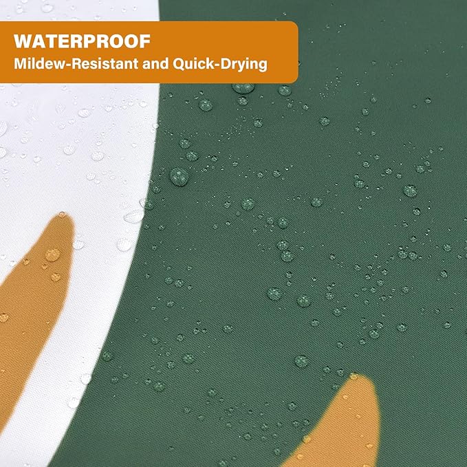 Boho Mid Century Shower Curtain Set for Bathroom, 72"X72" Green Shower Curtain for Chic Elegant Bathroom Decor, Fabric Shower Curtain Waterproof Durable (Green, 72" L x 72" W)