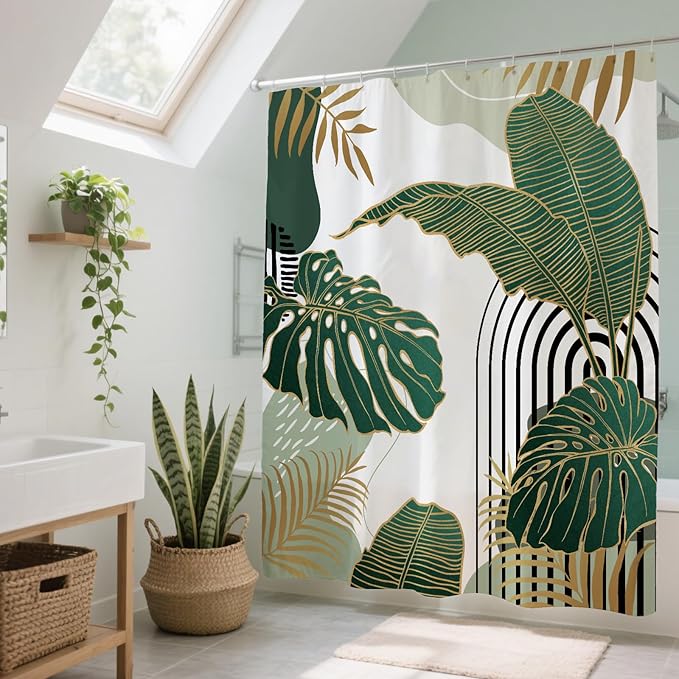- 【Exquisite patterns】Curtain featuring an eye-catching modern contrast design of gold leaves and green leaves, Using advanced color-fast technology, the HD graphic design features vibrant colors and a clear image, adding a touch of tropical elegance to your decor, A gorgeous tribute to the popular mid-century look interpreted in hip boho style with cute pattern & matching colors
